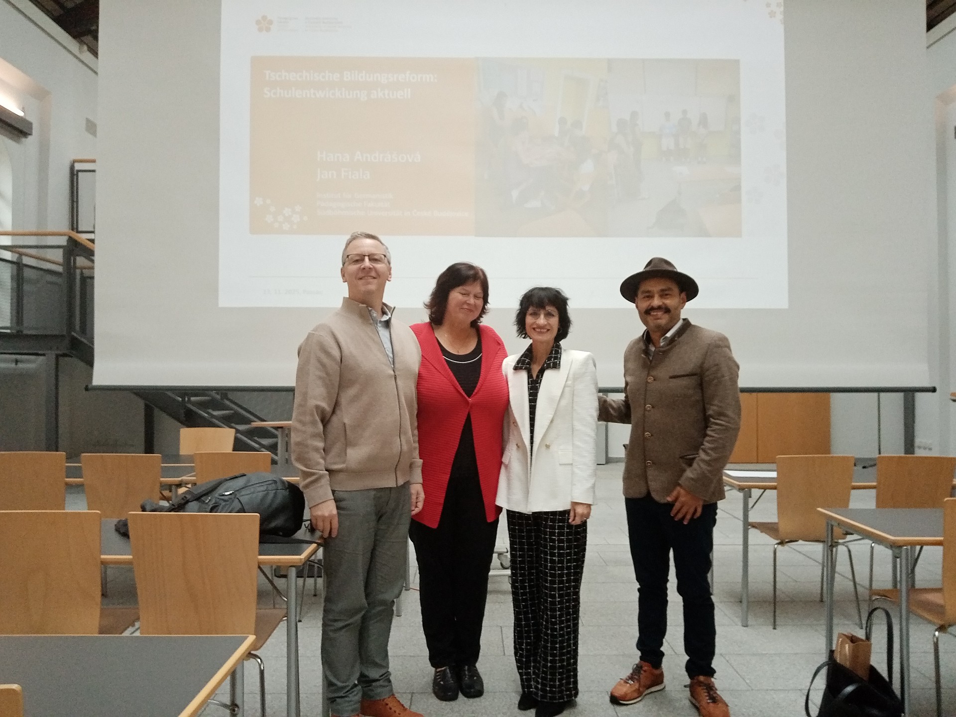 „Digitalizace a umělá inteligence jako trend rozvoje škol v Bavorsku a v Česku“ je název projektu Jihočeské univerzity a Universität Passau. Tento projekt je typický tím, že čeští a němečtí studenti v průběhu jednoho týdne absolvují sérii nejrůznějších výukových aktivit. Na zahajovací červnovou fázi projektu navázala v uplynulém týdnu fáze listopadová. A byl to opět týden nabitý výukou, přednáškami, semináři, exkurzemi a dalšími činnostmi. V pondělí 10. listopadu 2025 se česko-německé studentské týmy zapojily do výuky na Gymnáziu J. V. Jirsíka v Českých Budějovicích. Němečtí studenti zde společně s místními žáky realizovali připravené lekce, během nichž si prakticky vyzkoušeli využití nástrojů umělé inteligence a dalších digitálních technologií a mimo jiné přiblížili českým žákům nádherné město Pasov.