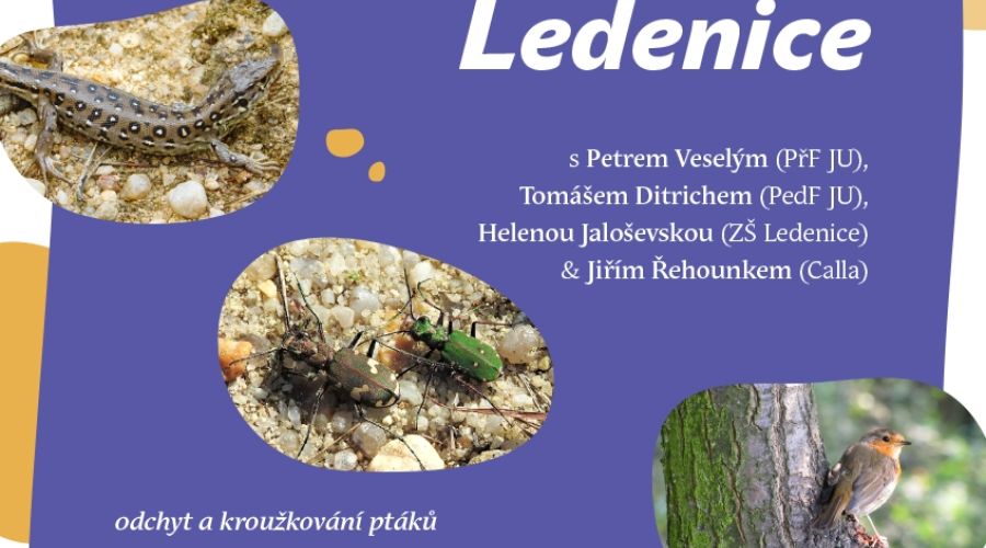 Zveme zájemce o přírodu na biologickou vycházku do pískovny u Ledenic - odchyt a kroužkování ptáků; poznávání vodního i suchozemského hmyzu a dalších zajímavých organismů; povídání o významu pískoven v ochraně přírody