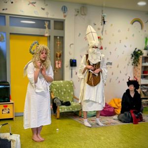 Zároveň i letos si studenti a studentky katedry geografie PF JU společně s pedagogy připravili již po šesté Mikuláše pro děti z Dětské skupiny Kvítek JU. Malí návštěvníci se mohli těšit na balíčky od Mikuláše, ale také na trochu čertovského dobrodružství či „andělského“ zpívání.
