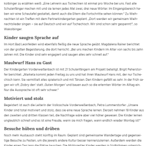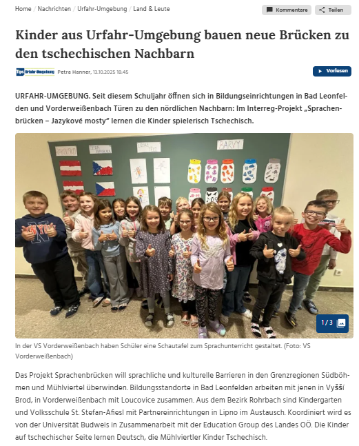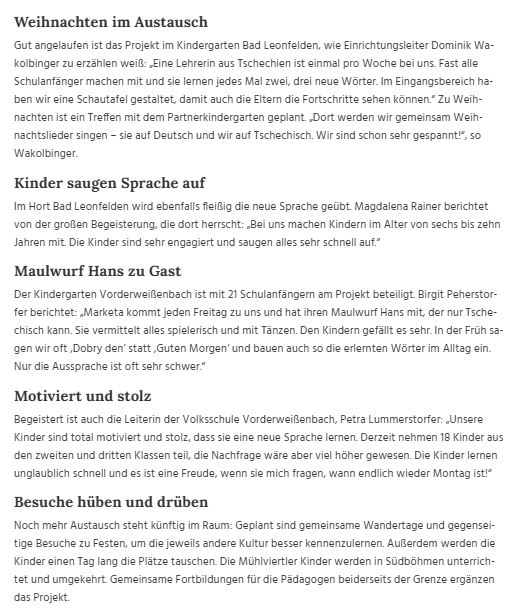 Über den Erfolg des Projekts berichtet auch die österreichische Regionalpresse: Das Nachrichtenportal Tips.at hebt die hohe Motivation der österreichischen Kinder beim Tschechischlernen hervor, ihre Freude am Lernen und die Vorfreude auf ein vorweihnachtliches Treffen mit tschechischen Kindern.