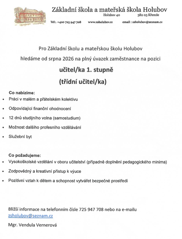 Učitel/ka na 1. stupeň ZŠ