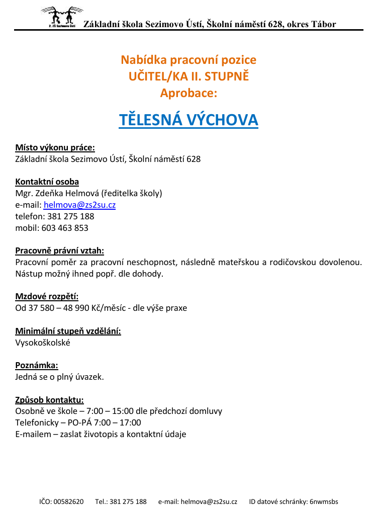 Učitel/ka tělesné výchovy na 2. stupni ZŠ
