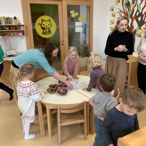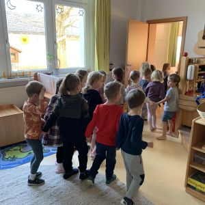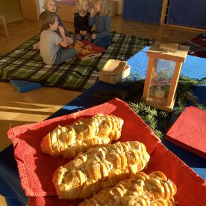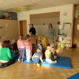 K odbourání počátečního ostychu přispěla i společná zdravá svačinka, kde byla pro děti připravena čerstvá vánočka, ovoce a zelenina. Následoval program loutkového divadla, kdy rakouská paní učitelka prostřednictvím hezky naaranžovaných kulis zahrála příběh o pasáčkovi s bílou ovečkou (Das Hirtenbüblein).