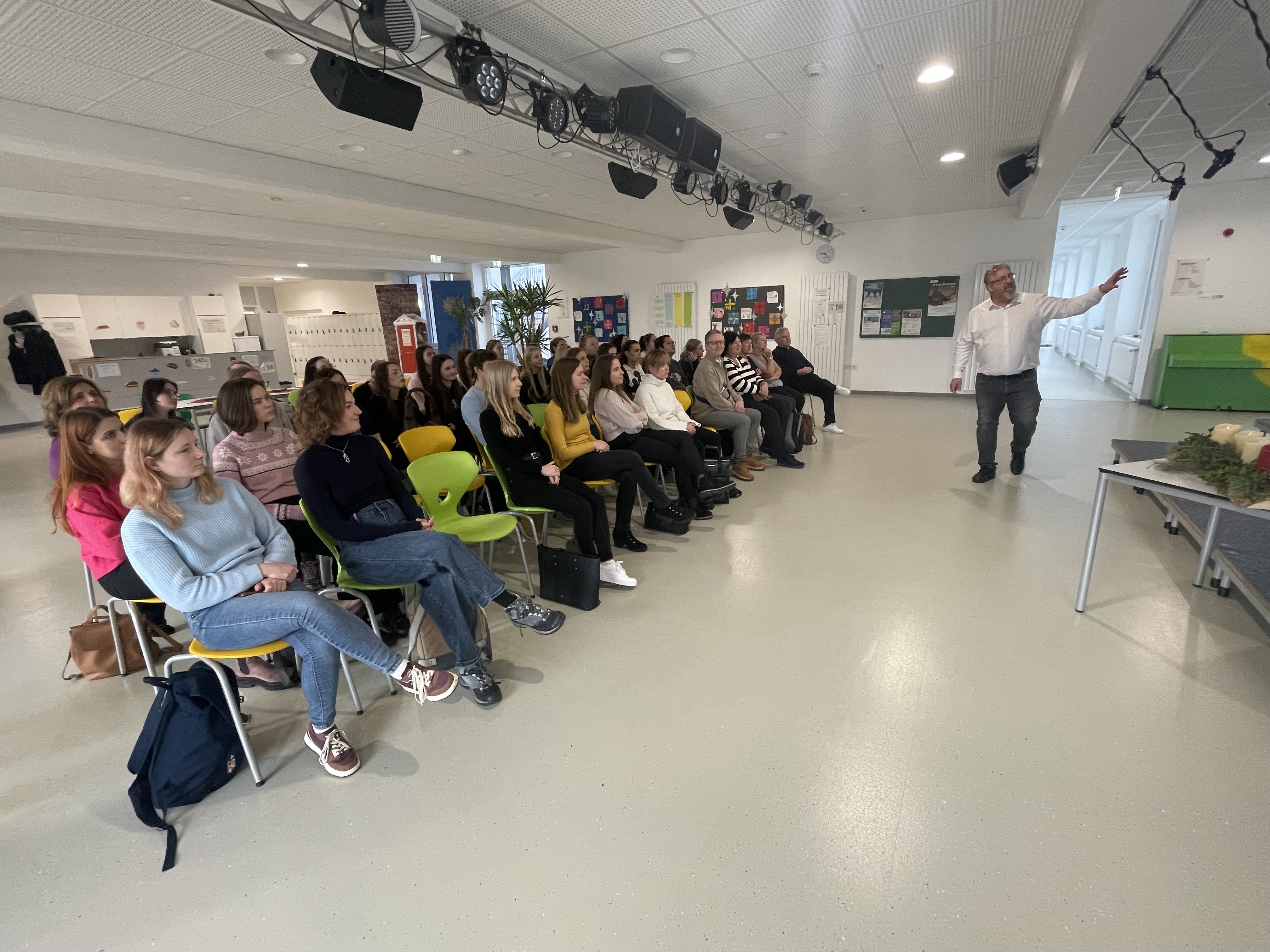 Program zahájilo oficiální přivítání a úvodní představení školy, její vzdělávací filozofie a mezinárodního profilu, které probíhalo v německém a anglickém jazyce. Následovala komentovaná prohlídka školy a rozdělení účastníků do skupin podle aprobací.