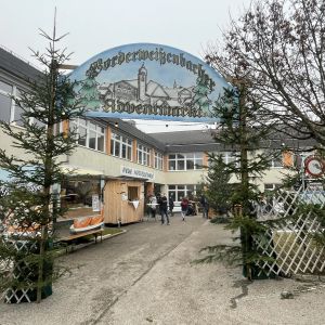 Fotografie na této stránce ukazují vystoupení dětí na adventní oslavě obce Vorderweißenbach 6. prosince 2025. Děti z Vorderweißenbachu a Loučovic stojí společně na jevišti a zpívají vánoční koledy v jazyce druhé strany.