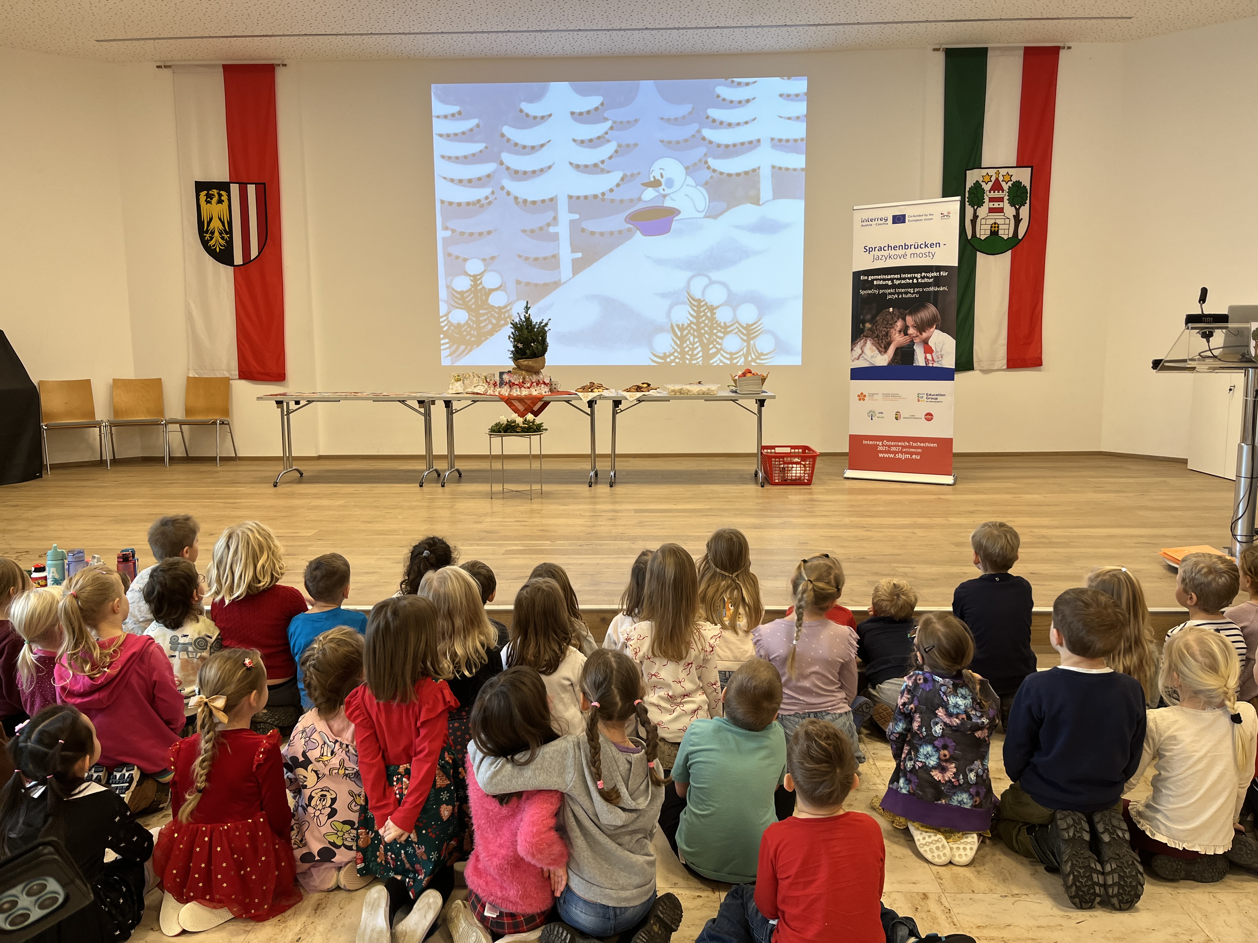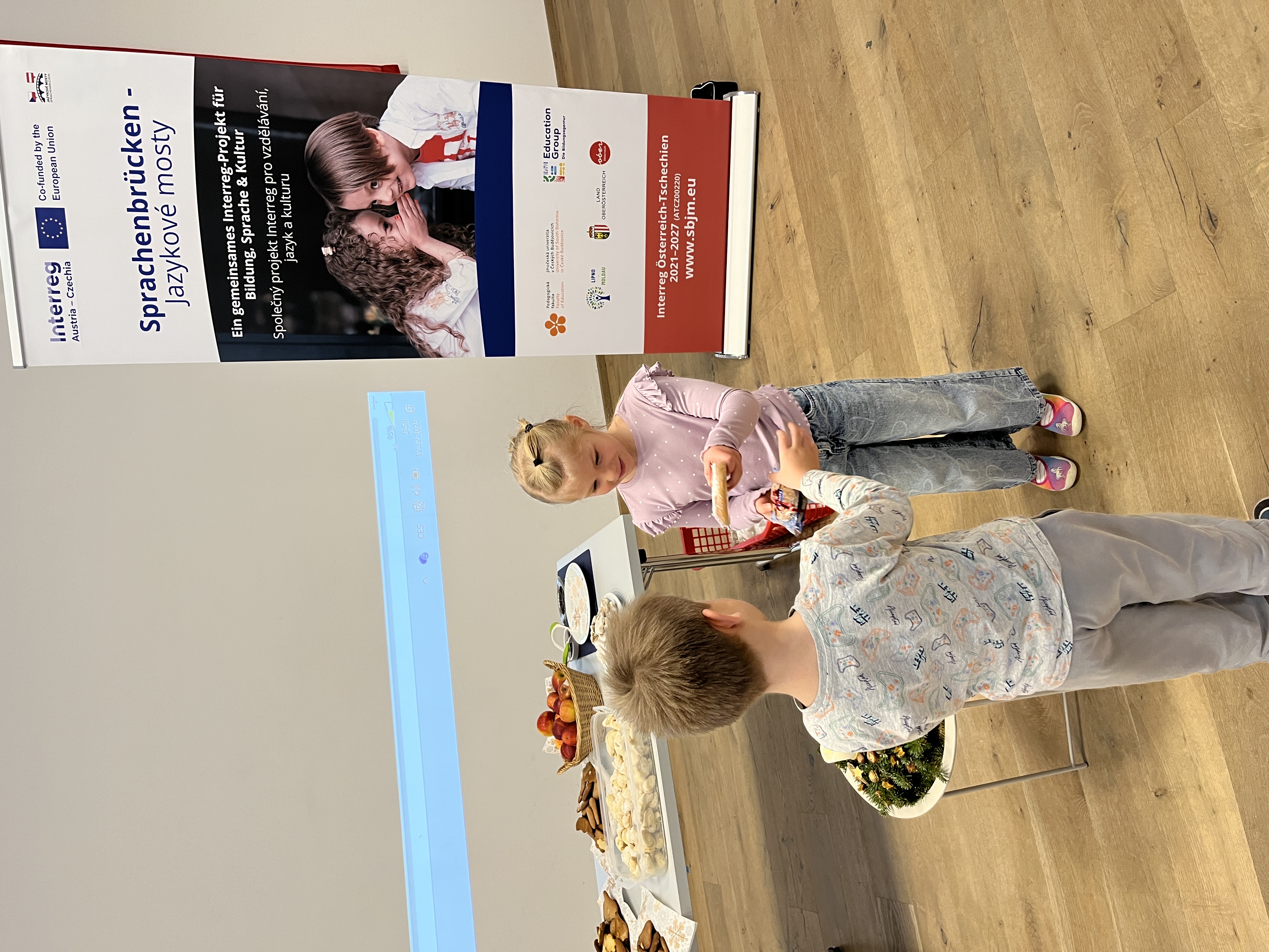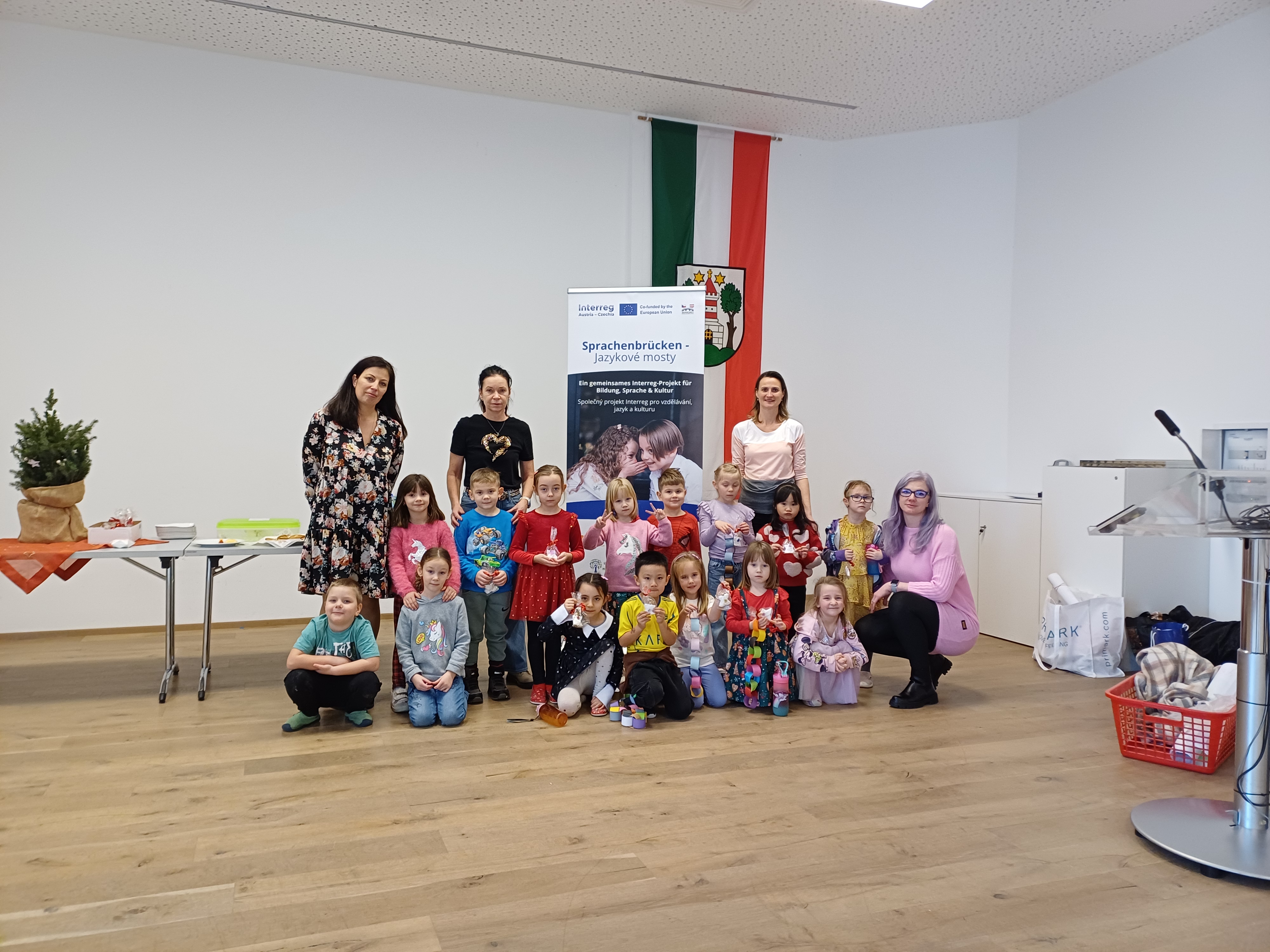 Ve středu 17. 12. 2025 se v budově „Haus am Ring“ v Bad Leonfeldenu uskutečnilo další setkání dětí zapojených do projektu „Sprachenbrücken – Jazykové mosty“ (ATCZ00220). Za svými novými kamarády tentokrát vyrazily děti z mateřské školy ve Vyšším Brodě. Všech 56 zúčastněných dětí si společné dopoledne opravdu užilo.