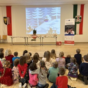 Děti se setkaly v 9 hodin ráno a hned od začátku panovala sváteční a veselá atmosféra. Navzájem předvedly, kolik už umí z jazyka svých sousedů, a společně si zazpívaly české i rakouské vánoční koledy. Rakouské děti se poté seznámily s českým krtečkem a všechny děti se společně naučily tancovat mazurku na písničku „Měla babka čtyři jabka“, kterou si během podzimu osvojily v češtině i v němčině.