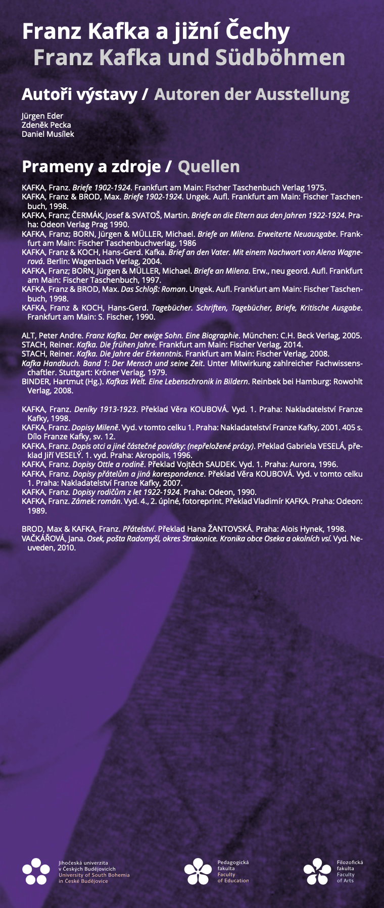 Autory výstavy jsou Jürgen Eder, Zdeněk Pecka a Daniel Musílek z Filozofické a Pedagogické fakulty Jihočeské univerzity v Českých Budějovicích.